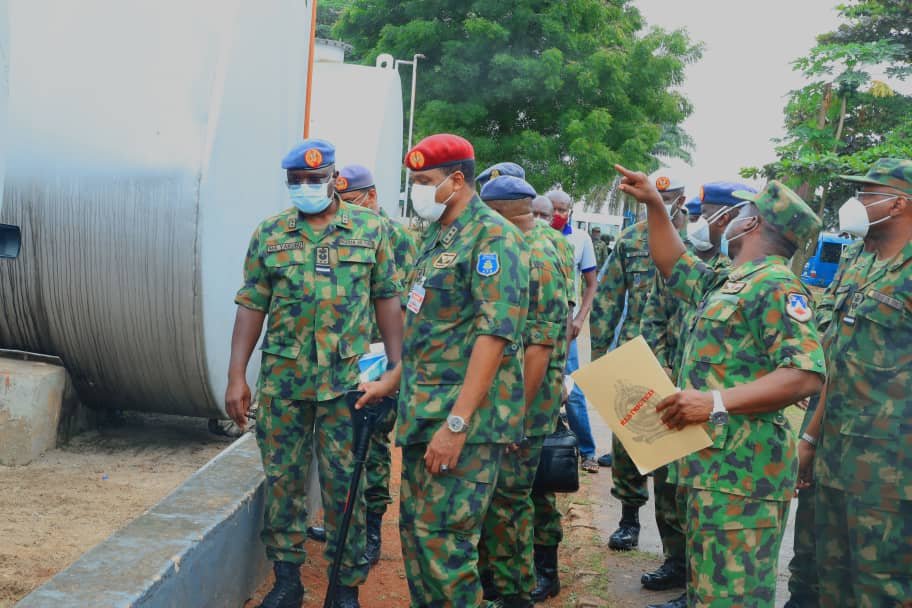 He was subsequently briefed on the activities of the 107 AMG by the Commander, Air Commodore Enebong Effiom, before proceeding to inspect the Aircraft Hangar and Taxiway, proposed site for Aircraft Shelters, Bulk Fuel Installation (BFI) facility as well as existing office and residential accommodations both within and outside the NAF Base, including the ongoing construction of a 30 x one bedroom accommodation for airmen.