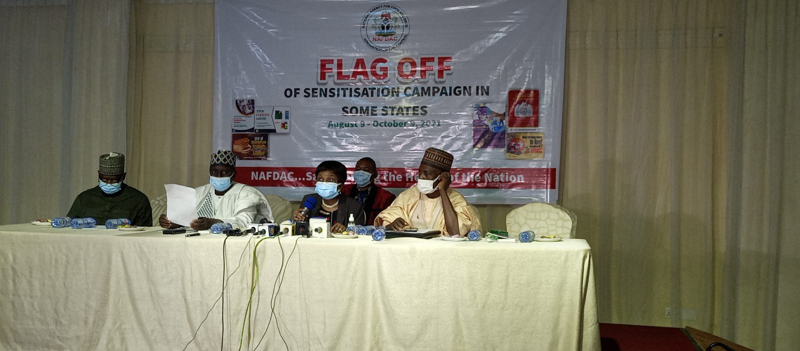 The Director General of the National Agency Food and Drug Administration and Control (NAFDAC), Professor Mojisola Christianah Adeyeye with the Senate Committee Chairman on Health, Senator Ibrahim Oloriegbe and the Chairman House Committee on Health Services, Alhaji Yusuf Tanko Sununu have Flag-off the first Phase of Public Health Sensitisation Campaign to protect Nigerians against the deleterious effects of unwholesome food, falsified medical products, Harmful Cosmetics, Poor Water and other Substandard regulated products.