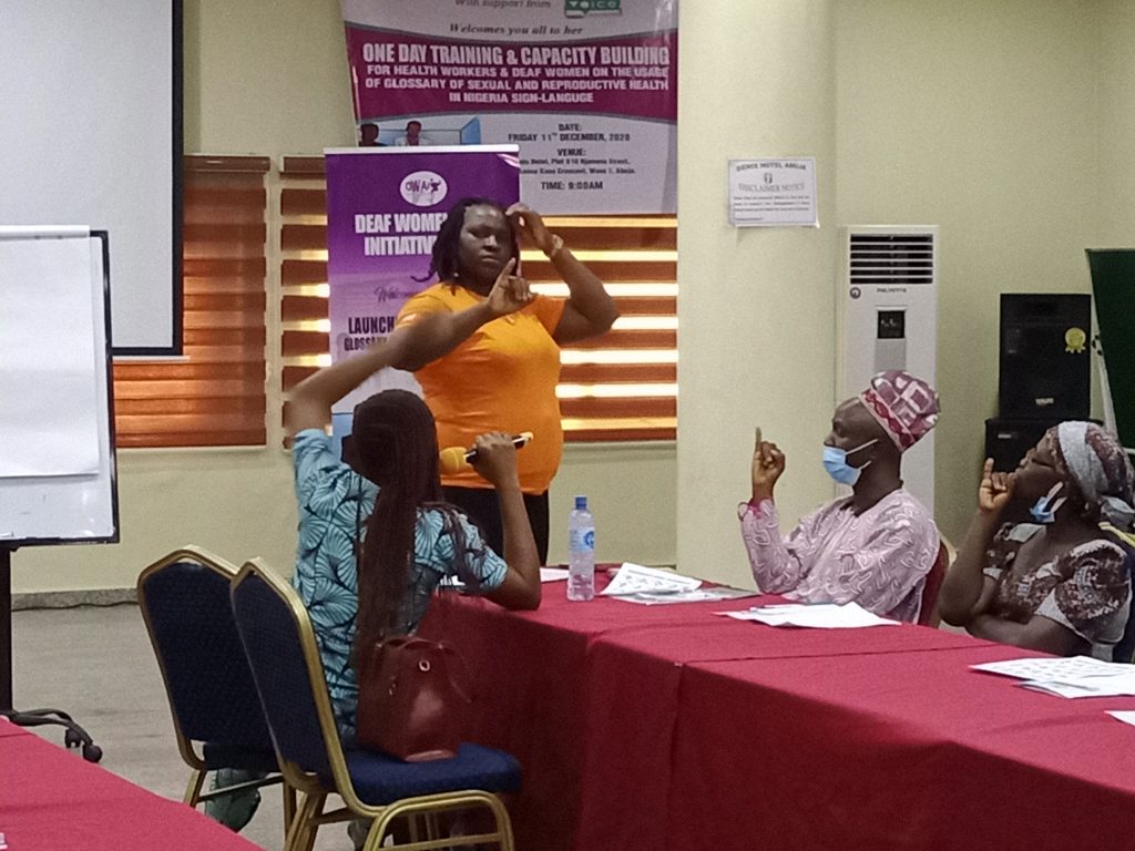 To this end, the Deaf Women Aloud Initiative (DWAI) has organized a one day Training and Capacity Building for Health Workers and Deaf Women on the Usage of Glossary for Sexual Reproductive Health in Nigeria Sign Language to address the communication gap between them in accessing health services in hospital’s across the country.