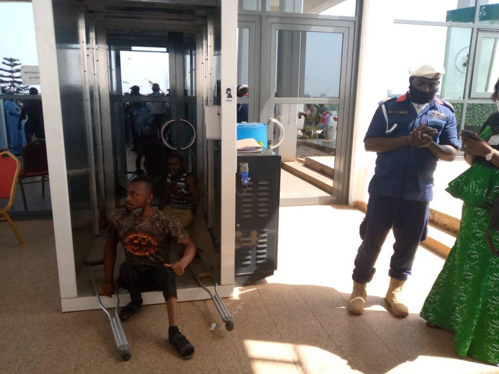 A few of the disabled persons immediately climbed the expanse iron gate and alighted at the other side from where they made the way for other colleagues.