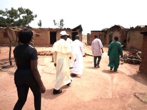 Represented by Rev. Fr. Joshua Achir, the Coordinator DPI aka JDPC on behalf of the Priests and Lay Faithful of Archdiocese of Kaduna, Bishop Ndagoso on Friday, 8th of March, 2019 commiserated with the people and thank them for keeping the peace since they were attacked eight days ago.