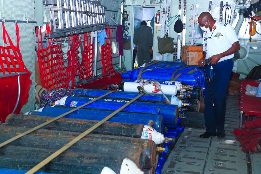 The Nigerian Air Force (NAF) has distributed 117 cylinders of LOX to two COVID-19 Management Centres in Abuja, in response to the recent spike in COVID-19 infections across the country.
