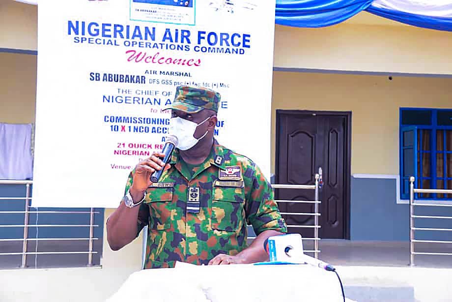 Represented at the occasion by the Air Officer Commanding (AOC), Special Operations Command (SOC), Air Vice Marshal Charles Ohwo, the CAS disclosed that the newly constructed accommodation was provided to create a conducive environment that would motivate the personnel to perform optimally as well as reassure them that the Service is sensitive to their welfare needs.