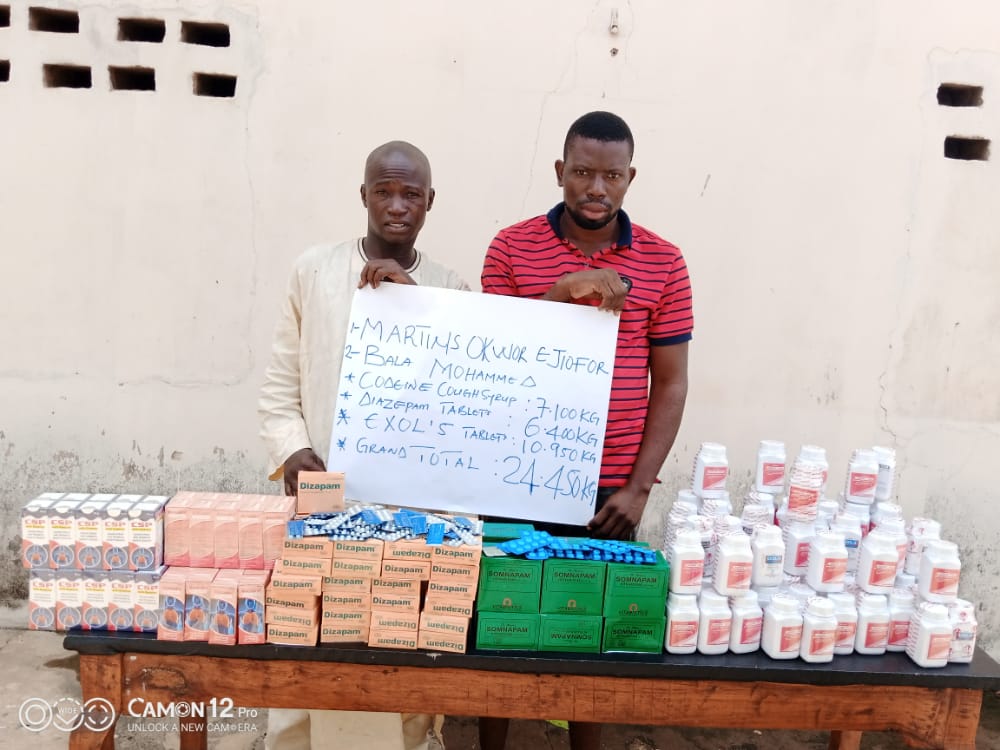 The Operatives of the National Drug Law Enforcement Agency, NDLEA, has arrested two drug dealers, Martins Okwor Ejiofor, 31, and Bala Mohammed, 33, with a total of 24.450 kilograms of assorted substances meant to be delivered in Gwada, Shiroro Local Government of Niger State where bandits in neighbouring forest buy their illicit drugs.