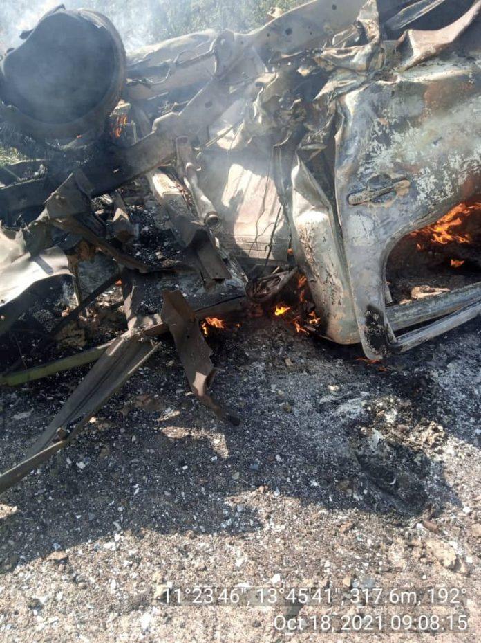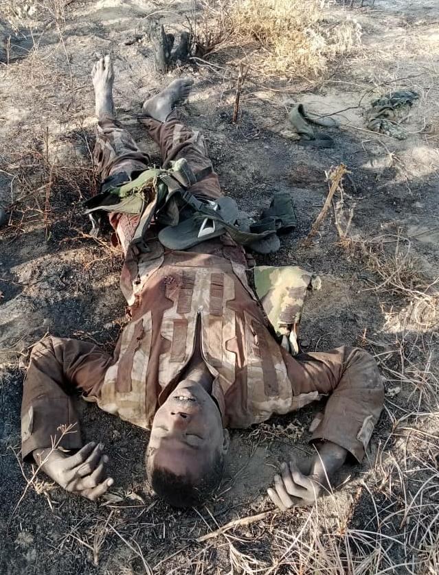 The terrorists were burnt beyond recognition, as their Gun truck mounted with Anti Aircraft Guns ran over Vehicle Improvised Explosive Device. Own troops are currently conducting further exploitation ahead of the location to clear any surviving terrorist.