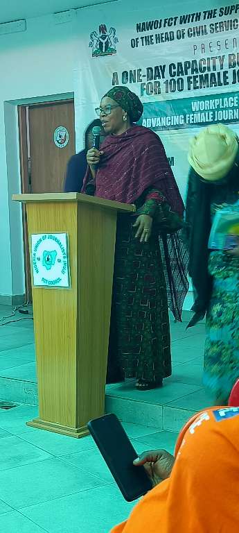 At the One-Day Capacity Building Training for 100 Female Journalists themed “Workplace Diversification: Advancing Female Journalists’ Role in the Newsroom,” the hall grew still when Hajiya Zainab Okino, Chairman, Editorial Board of Blueprint Newspaper, stepped forward.